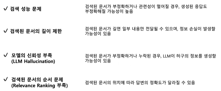| 장점 | 간단, 빠름 | 효율적(불필요한 검색 줄임), 정확성 ↑, 환각(hallucination) ↓ |
